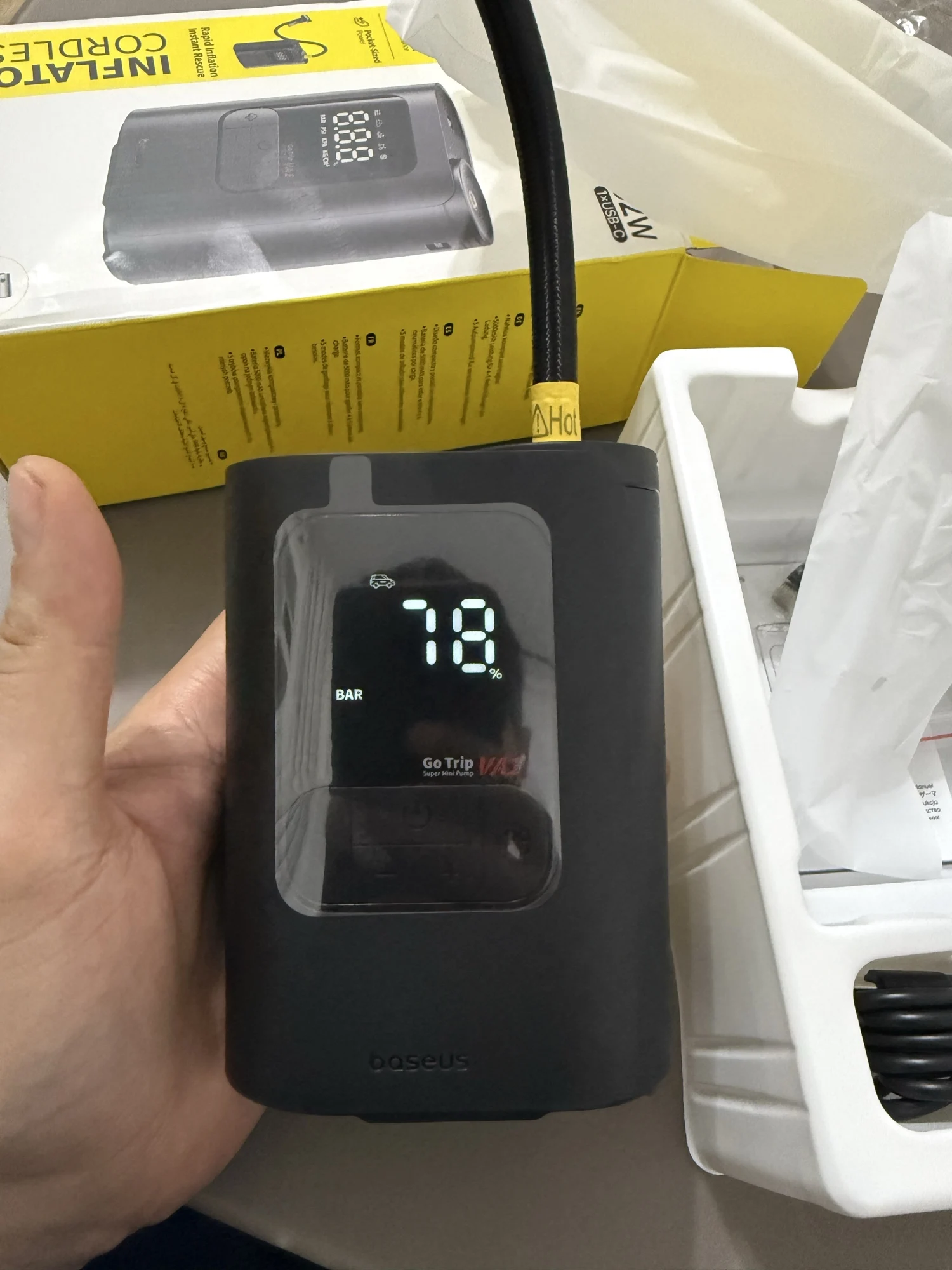 Very good equipment, worth every penny. Very well-built, quality Baseus standard. It's not like other generic compressors; this one is robust and inflates quickly. From 15 to 28 psi took less than 5 minutes.