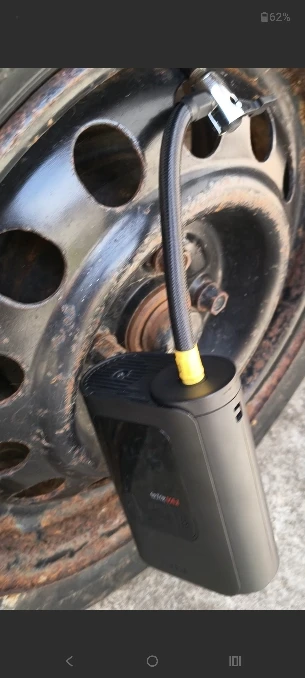 Bought it to inflate tires during temperature changes. Inflated 4 tires from 2 to 2.2 with 20% charge. Perfect for inflating, no need to dance with a kilometer-long cord and the cigarette lighter fuse won't blow. I would like a longer hose.